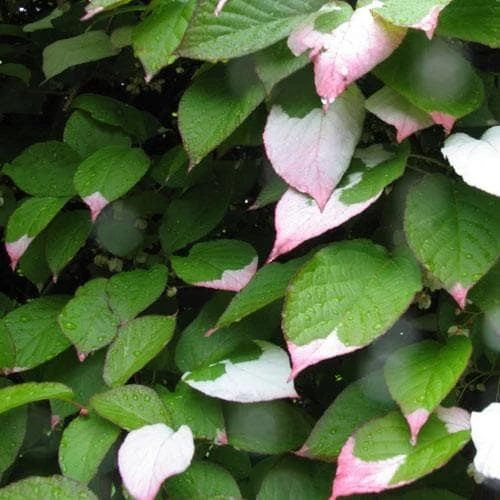 A deciduous woody ornamental climber, growing to an ultimate height of over 20 ft, notable for its pink and white variegation and small kiwi fruit type berries. For fruit you need both male and female plants. Very hardy and vigorous, bearing white flowers in summer.