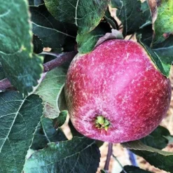 One of the few apples that can be used for a single-varietal cider, Malus domestica Kingston Black was bred in Kingston, Somerset in the 19th century. The fruit is comparatively small, almost completely flushed a very deep maroon-red; it produces an aromatic, well-balanced, bitter-sharp juice with a lovely, distinctive flavour. The tree is a light, not always reliable, cropper, slow to come into bearing, and can be susceptible to scab and canker, but is nevertheless popular with cider-makers for its exceptionally high-quality juice. A spur-bearer, cider apple Kingston Black is good for pollinators.