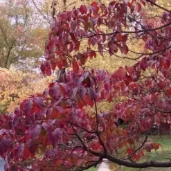 Originally from the Eastern United States, Cornus florida f. rubra is a small, spreading, conical, deciduous tree. Mid-green, slightly twisted, leaves turn purple and red in autumn. The true flowers are small and yellowish-green and are surrounded by four showy white bracts flushed deep reddish-pink. These appear in early summer, and are followed in late summer by red berries, toxic to humans but loved by birds. The pink dogwood is a hardy, healthy tree, but flowers best in warm areas, and should be given a sheltered position in cold areas.