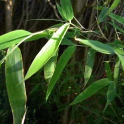 A beautiful and well-behaved bamboo from China, Fargesia murielae was introduced by Ernest ‘Chinese’ Wilson, who named it for his daughter. It’s a medium-sized, dense, clump-forming, evergreen bamboo with a graceful, arching, almost weeping habit, from which it gets its common name. The new culms (canes) emerge pale blue from tan sheaths, but turn yellowish-green. The leaves are spear-shaped, and an attractive, soft green. Umbrella bamboo’s dense growth makes it particularly suitable for screens, but it also makes a beautiful specimen for a small garden. Umbrella bamboo holds the RHS Award of Garden Merit.
