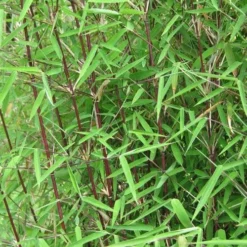 Named after the high, Eastern Himalayan National Park in Sichuan, China where it was collected, Juizhaigou is a very hardy bamboo with red canes which can reach up to 15 feet depending on the form. There are several forms which range in autumn or spring stem colour from gold to deep cherry red, all extremely hardy. The leaves are delicate, borne on clusters of thin branches which spring from the nodes on the canes. They grow best in a spot that is sheltered from midday sun but that gets some sun during the early part of the day. With its upright habit, Juizhaigou makes an excellent container specimen, but like all bamboos grown in containers, it must be kept well watered.