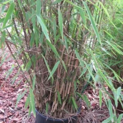 Another lovely cultivar out of bamboo expert Hans Verweig’s hat – as the name ‘Fargesia’ suggests it has a slightly cascading growth habit – not unlike a fountain – but the upright blue-green canes are of interest mostly because they reliably keep the majority of their leaves in the Winter, making this plant an excellent choice for hedging and privacy screening. As bamboo goes, this is a medium size plant.