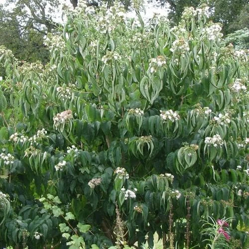 A member of the honeysuckle family and better known in North America, where it is sometimes called Crape Myrtle of the North, or Seven Son Flower. The scented, creamy white flowers fall with the first frosts but their calyxes remain, turning pink before darkening to burgundy. Butterflies love heptacodium almost as much as Buddleia.