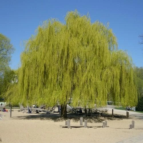 A stunningly elegant weeping tree, the Golden Weeping Willow (syn. S. x sepulcralis Chrysocoma) is seen in many estates throughout Europe. Regularly planted as a specimen tree near a lake where it can be best appreciated, its branches will droop down touching the water below, providing amazing aesthetic quality and most importantly a wildlife haven. Coupled with its exquisite Winter colour, it is deserving of any mid to larger sized garden.Â