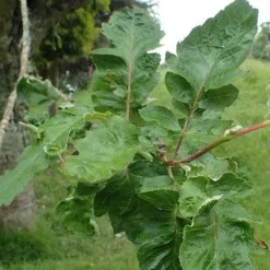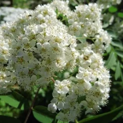A cross between the native rowan and the whitebeam, Sorbus x thuringiaca Fastigiata is a small to medium-sized, deciduous tree with some of the best features of both parents. It has upright branches and an almost columnar habit when young, eventually forming a more oval crown. The serrated, sometimes semi-divided, leaves are deep green on the upper surface and pale silvery-grey below, and often turn a brilliant orange in autumn. In May, conspicuous heads of creamy-white flowers appear, followed in autumn by clusters of deep red berries, which will persist into winter. A neat, pretty, but tough little tree, it will tolerate wind, cold, drought, urban pollution and paving, and makes an excellent street tree or specimen for urban gardens. Good for bees and birds.